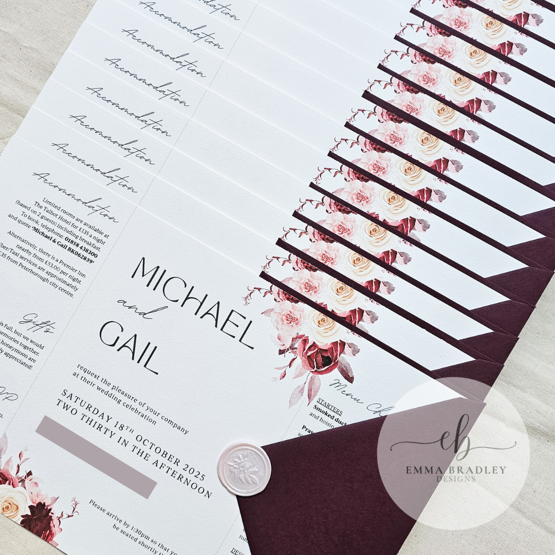 All stationery is printed on beautifully sourced card, whether you choose Linen, Hammered, or Smooth. All of the materials have been located from reputable companies with the highest level of quality and service.
